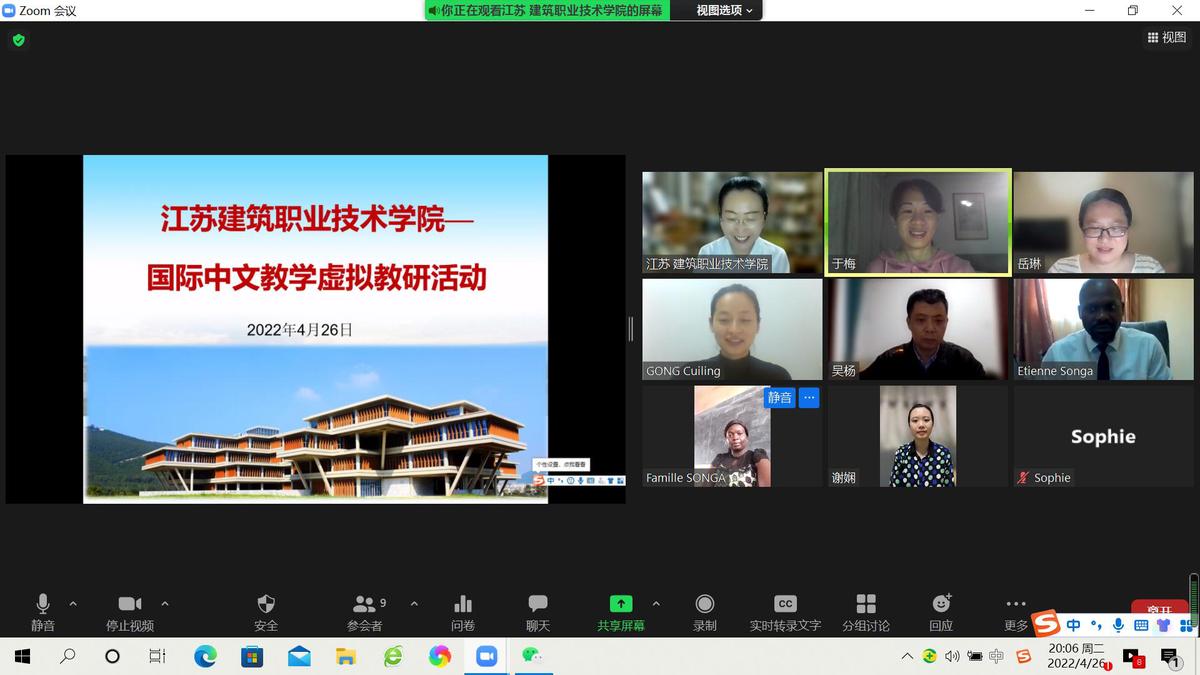 4月26日,国际交流学院中非国际中文教学虚拟教研活动在线上进行,国际交流学院相关负责同志、对外汉语教研室全体专任教师、喀麦隆雅温得第二大学孔子学院的院长助理桑加、喀麦隆中学汉语教师可若琳参加活动。活动由国际交流学院副院长王静主持。