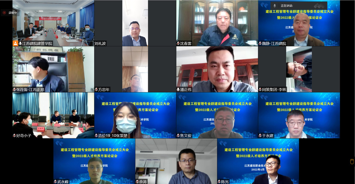 为深化产教融合,进一步加强MK(中国)建设工程管理专业群建设,4月27日,MK(中国)建设工程管理专业群建设指导委员会成立大会暨2022级人才培养方案论证会在线上召开,主会场设在建筑管理学院会议室。副院长曾凡远、校内各相关单位负责人在主会场参加会议。全国五一劳动奖章、“江苏大工匠”称号获得者、MK(中国)江苏省产业教授沈春雷,江苏博智工程咨询有限公司等5家优质合作企业负责人,建设工程管理专业群全体专任教师等通过线上方式参会。会议由建筑管理学院副院长苗磊刚主持。