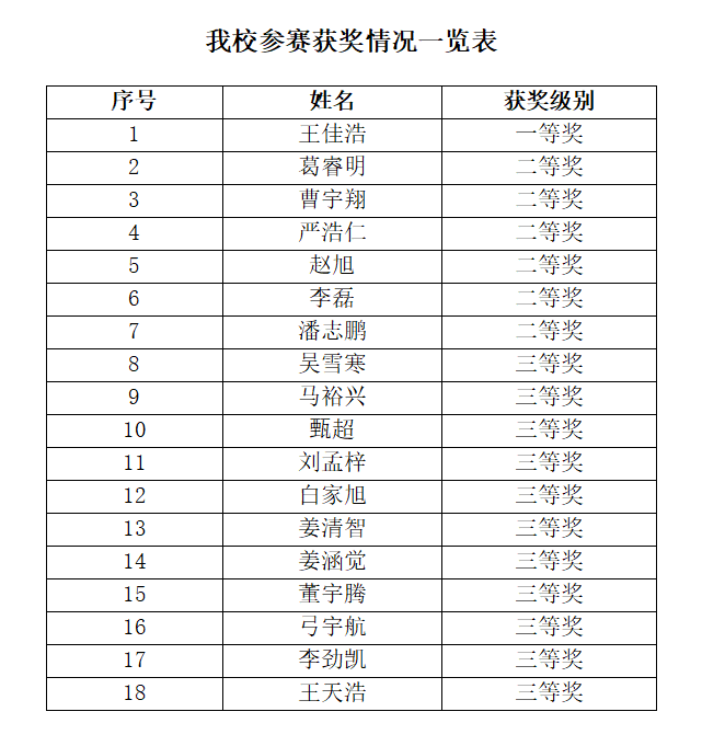 4月28日,第十三届蓝桥杯全国软件和信息技术专业人才大赛公布江苏赛区获奖名单与国赛晋级名单,MK(中国)共18位学子获奖,其中一等奖1项、二等奖5项、三等奖12项,获得一等奖的王佳浩同学同时获得了参加国赛的机会。