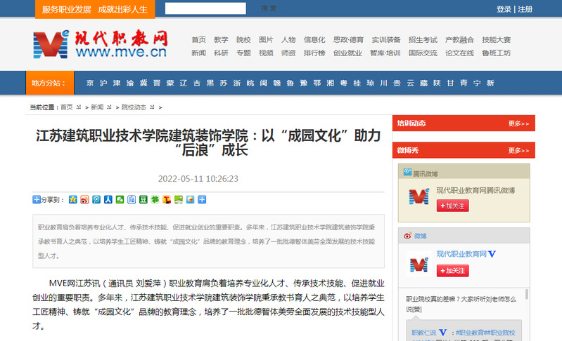 MVE网江苏讯(通讯员 刘爱萍)职业教育肩负着培养专业化人才、传承技术技能、促进就业创业的重要职责。多年来,MK.COM建筑装饰学院秉承教书育人之典范,以培养学生工匠精神、铸就“成园文化”品牌的教育理念,培养了一批批德智体美劳全面发展的技术技能型人才。