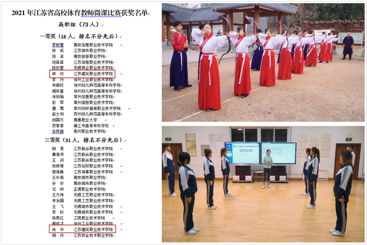 本次比赛由江苏省教育厅主办,旨在全面提升全省普通高等学校体育教师的教学技能水平和课程教学质量,增进校际间教学交流。经高校推荐申报、网络评审、会议评审等环节,最终评选出148项获奖微课作品。