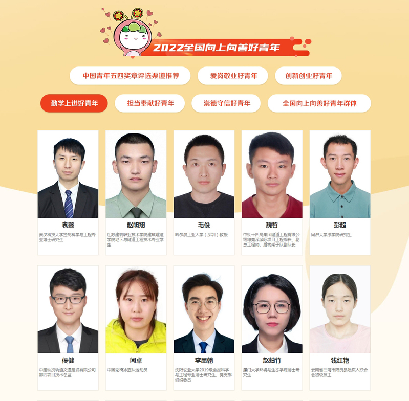 “全国向上向善好青年”推选活动是共青团加强青少年精神文明建设的一项重要载体,由团中央主办,每年举办一次。活动采取社会化推选的方式,广泛动员各领域、各行业团员青年积极参与,主动寻找、发现自己身边符合好青年推选标准、模范践行社会主义核心价值观、带头弘扬社会主义精神文明的青年榜样。本次活动共有来自全国各地的3.2万余名青年申请参选,经过初步筛选、网络点赞和群众代表评议等环节,最终142名优秀青年、23个优秀青年群体获此荣誉。