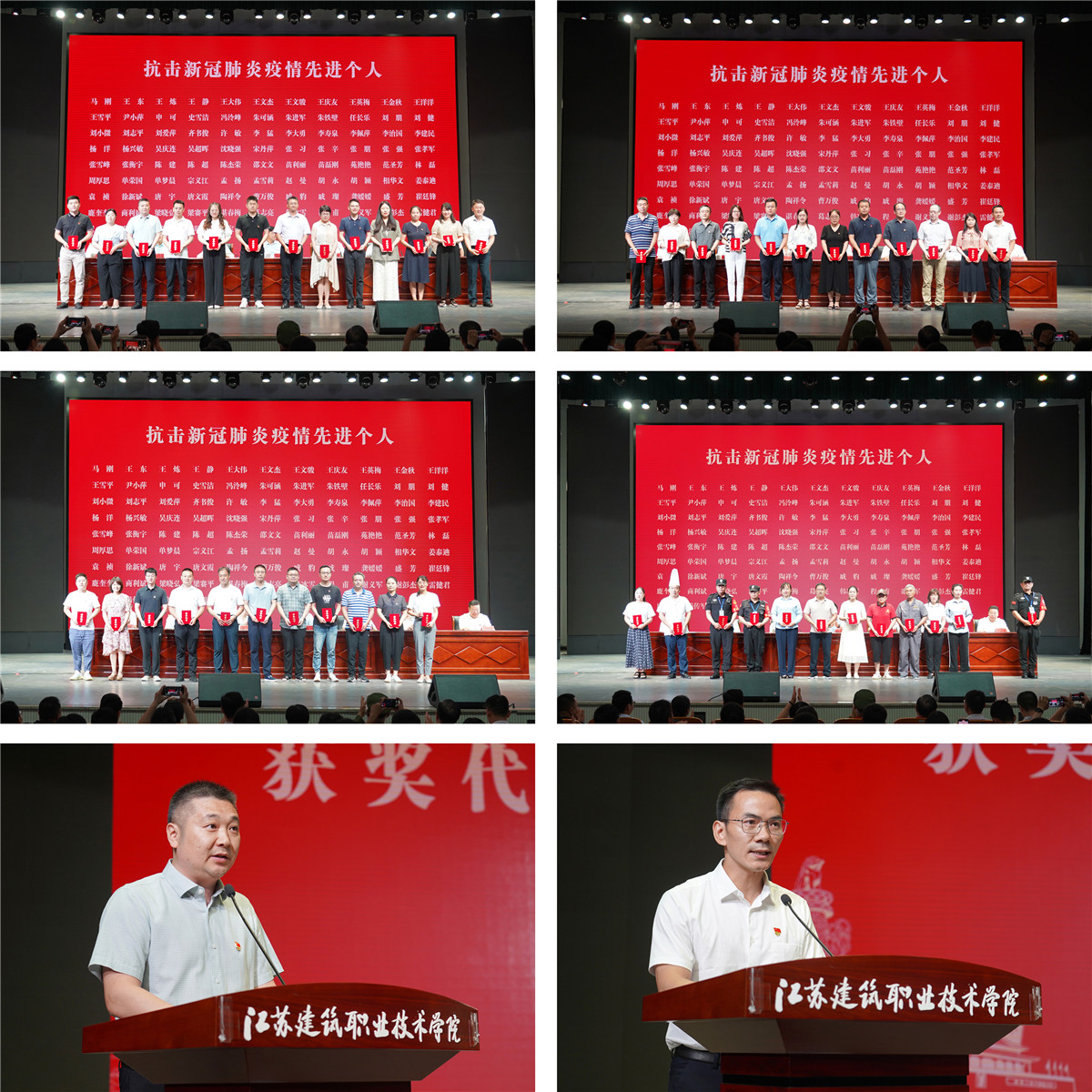 6月28日上午,学校在会堂召开表彰大会,隆重表彰近一年来在党建工作及抗击新冠肺炎疫情工作方面涌现出的先进集体和先进个人。党委书记孙进教授,院长沈士德教授,党委副书记梁惠,纪委书记魏勇,副院长曾凡远、刘海波、蒋兆峰,全体教职员工和部分离退休教职工代表出席大会。大会由沈士德主持。
