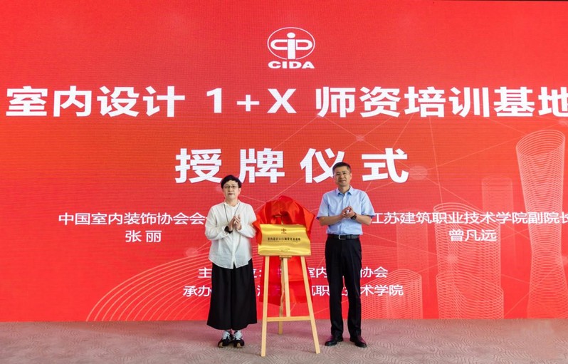 开幕式上,曾凡远代表学校致辞。他向全体参培人员简要介绍了学校的办学历史、主要成果及专业建设思路,并重点围绕产教融合、“1+X”证书制度落实等工作推进情况进行了说明。张丽代表主办方简要介绍了本次培训的开展目的与意义,并详细解读了室内设计“1+X”试点工作的总体落实思路与前期推进情况。致辞结束后,曾凡远与张丽共同为“室内设计1+X师资培训基地”揭牌。开幕式上还宣读了室内设计职业技能等级证书江苏省工作委员会成立文件,并为相关领导、专家颁发了聘书。