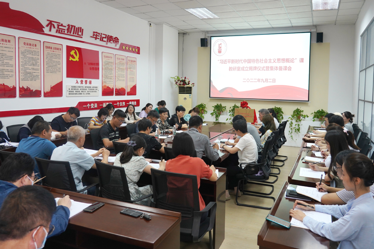 马克思主义学院利用暑假时间精心组织教师培训、实践研修等工作,从教师中选拔骨干力量组建教学团队,常态化开展教研活动,为秋学期开设“习近平新时代中国特色社会主义思想概论”课做好各项准备工作。教研室揭牌仪式后,马院骨干教师还进行了“习近平新时代中国特色社会主义思想概论”课集体备课研讨。