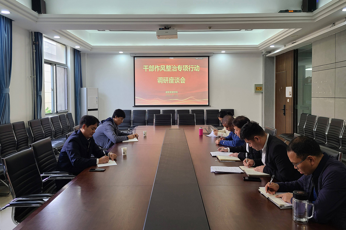 朱作付认真听取了建筑管理学院关于落实干部作风整治专项行动的进展汇报,详细了解了具体的工作安排与任务分解情况,并对调研过程中发现的问题与不足给予了重点指导。他叮嘱全体与会人员:一是要提高思想认识,统一思想,切实做好干部作风整治工作,把作风整治与具体工作相结合,推动工作顺利开展;二要明确学院发展思路,抓准工作切入点和发力点,推动学院高质量发展;三是要深入基层一线,加强与师生交流沟通,高度关注师生“急难愁盼”问题;四是要加强责任担当,把抓业务工作与抓安全稳定结合起来,确保学院安全稳定。