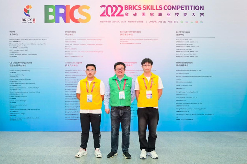11月4日-6日,2022年金砖国家职业技能大赛决赛在福建厦门举行。经过比拼,MK(中国)信电工程学院计算机网络技术专业学生李旭、杜天坤同学组成的参赛队荣获“IT网络系统管理”赛项一等奖。团队指导老师翟靖轩、吴兆立获评“优秀专家”称号。