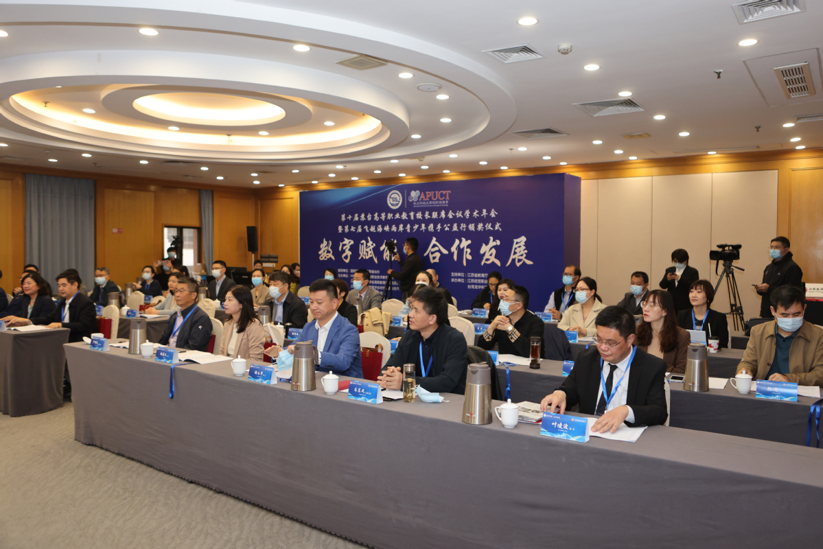 此次会议由江苏经贸职业技术学院和台湾龙华科技大学共同举办,主题为“数字赋能 合作发展”。江苏40余所高职院校以及台湾40余所科技大学的学者、嘉宾及师生代表通过线上联线方式围绕会议主题进行了研讨交流。