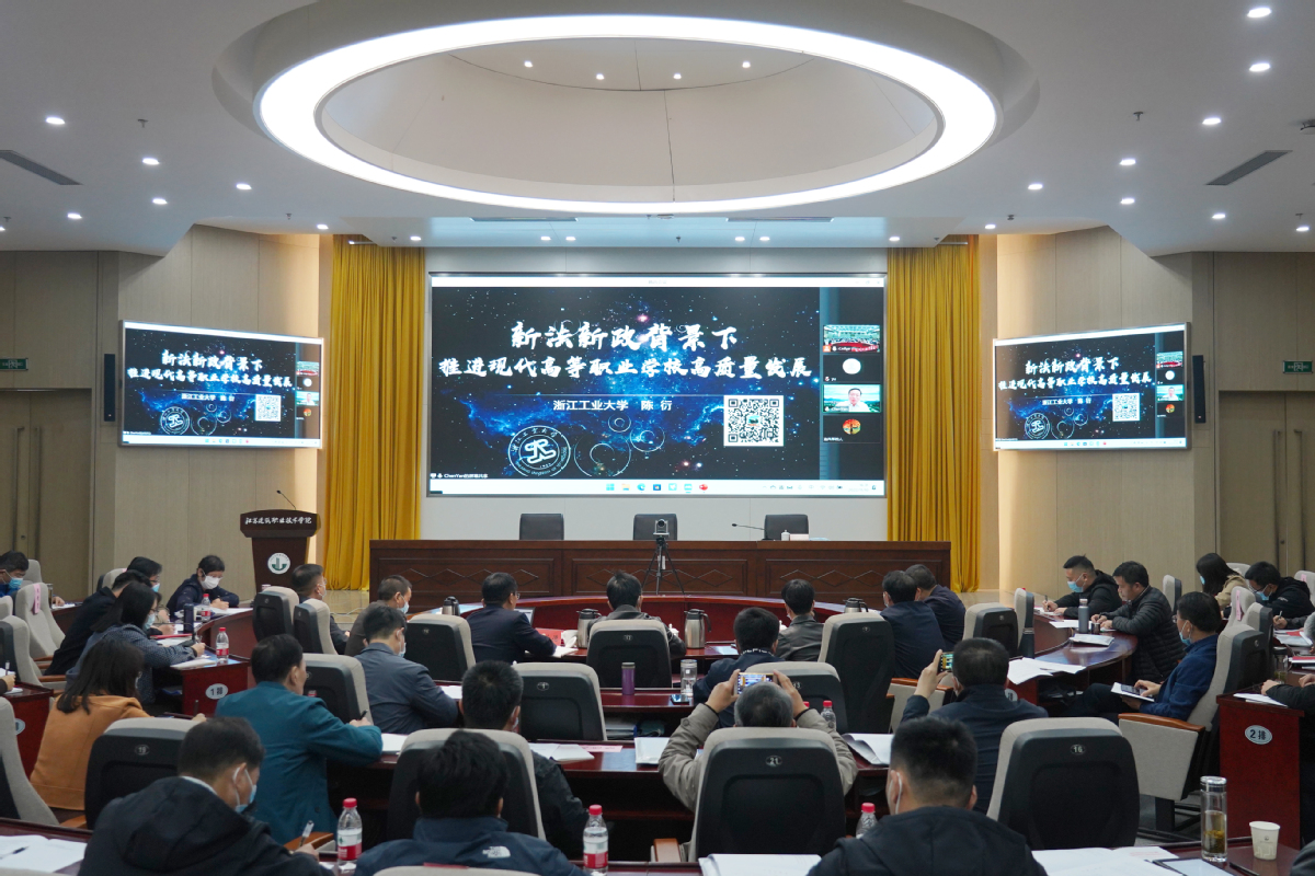 开班仪式结束后,举行了两场专题讲座。南京工业职业技术大学党委书记、研究员吴学敏以及浙江工业大学教授陈衍分别作了题为《职业本科教育办学的基本问题探究》和《推进现代高等职业学校高质量发展》的报告。