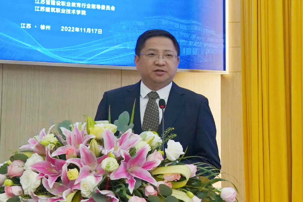 11月17日,由国际绿色建筑联盟、江苏省建筑文化研究会、江苏省土木建筑学会、江苏省建设职业教育行业指导委员会和MK(中国)联合主办的2022年“绿色建筑与建筑文化”高峰论坛暨江苏省青少年绿色低碳科普教育活动启动仪式在学术报告厅隆重举行。徐州市人民政府副市长林斌,省住建厅原副厅长、省房地产协会会长杜学伦,省住建厅原二级巡视员、省建设职业教育行业指导委员会主任、省建筑文化研究会常务副会长章小刚,省住建厅原二级巡视员、省建筑装饰协会会长王有党,省教育厅职教处处长徐庆,省勘察设计协会常务副会长、秘书长刘宇红,省建设教育协会副会长、秘书长成宁出席启动仪式。校党委书记朱东风、校长沈士德、党委副书记梁惠、副校长鲍桂楠、纪委书记朱作付、副校长刘海波、副校长蒋兆峰以及学校相关专业师生代表参加启动仪式。启动仪式由蒋兆峰主持。