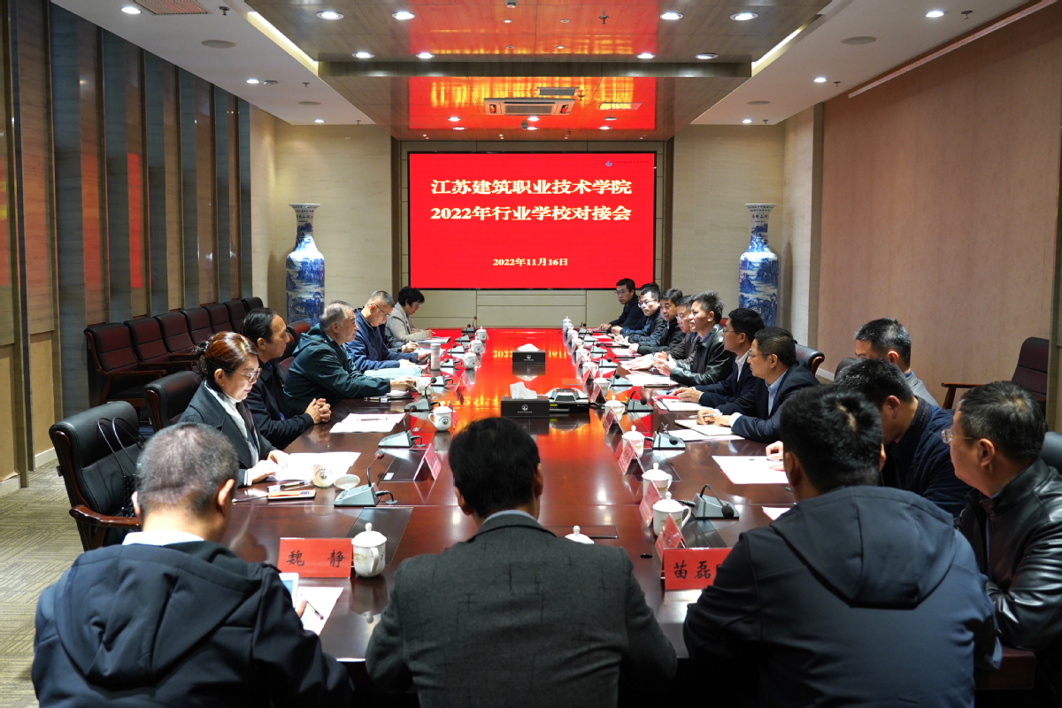 11月16日下午,学校在图书馆会议室举行2022年行业学校对接会。省房地产协会会长杜学伦,省建设教育行指委主任章小刚、省建筑装饰协会会长王有党,省土木建筑学会城市轨道交通专委会主任张大春,省勘察设计协会常务副会长、秘书长刘宇红,建设教育协会副会长、秘书长成宁,学校党委书记朱东风、校长沈士德、副校长刘海波、副校长蒋兆峰及相关职能部门、二级学院负责人参加会议。