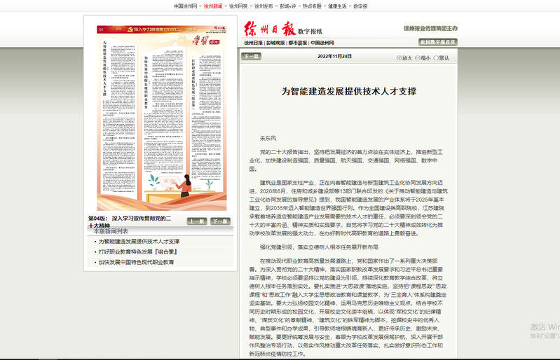 建筑业是国家支柱产业,正在向着智能建造与新型建筑工业化协同发展方向迈进,2020年8月,住房和城乡建设部等13部门联合印发的《关于推动智能建造与建筑工业化协同发展的指导意见》提到,我国智能建造发展的产业体系将于2025年基本建立,到2035年迈入智能建造世界强国行列。作为全国建设类高职院校,江苏建院承载着培养适应智能建造产业发展需要的技术人才的重任,必须要深刻领会党的二十大的丰富内涵、精神实质和实践要求,自觉将学习党的二十大精神成效转化为推动学校改革发展的强大动力,在办好新时代高职教育的道路上勇毅奋进。