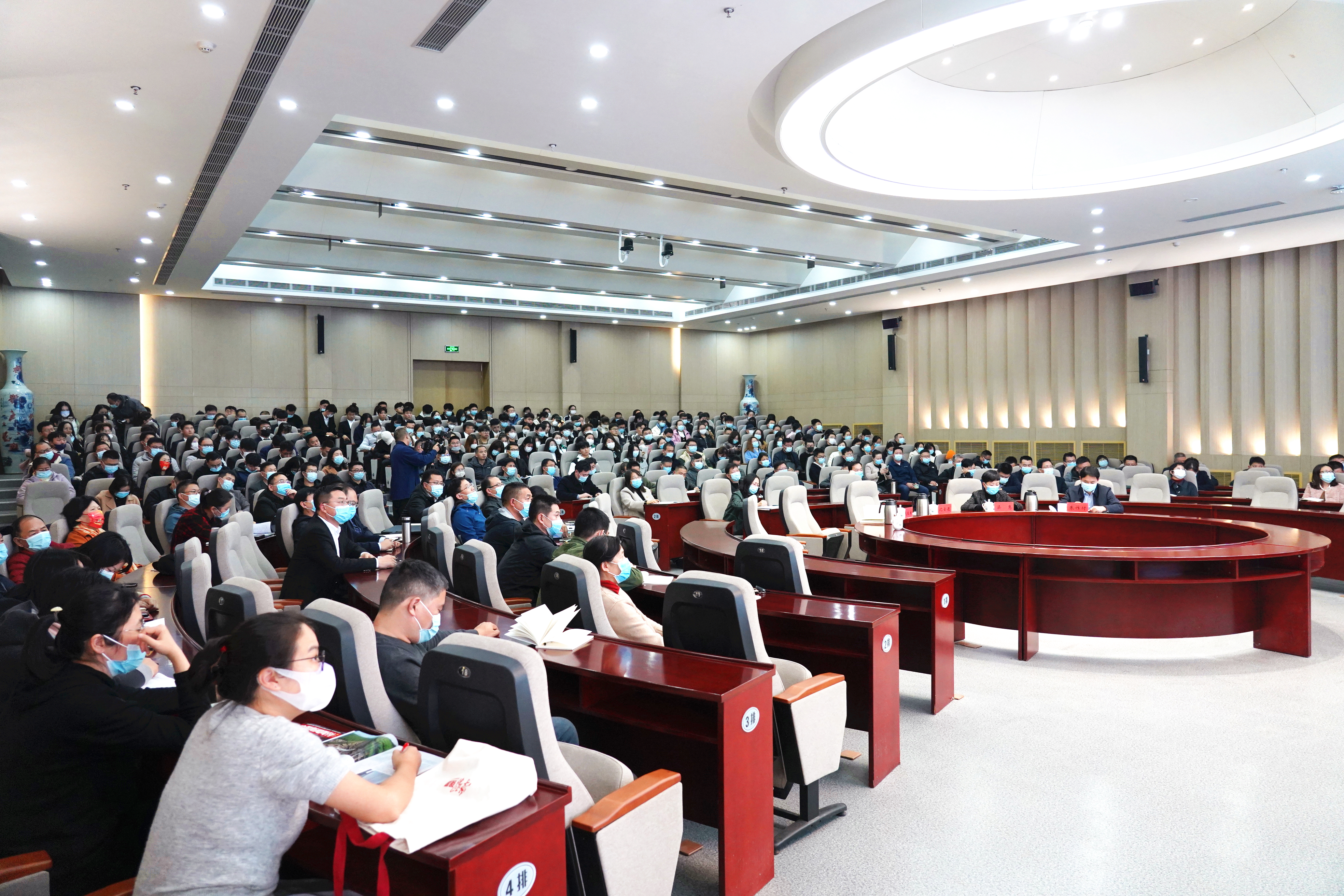 其他在校校级领导,校院两级理论学习中心组成员,机关党总支全体教职工,马克思主义学院全体教师和部分学生代表200余人参加了报告会。