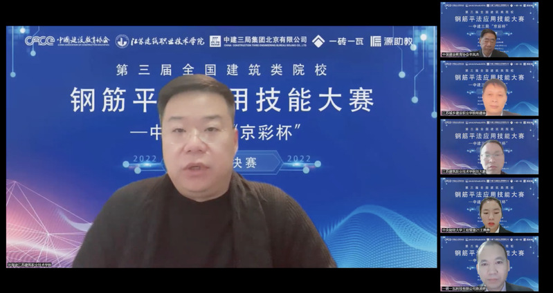 大赛主办方、协办方代表分别致辞。大赛裁判长、江苏城乡建设职业学院管理工程学院院长杨建林代表裁判发言,中央财经大学21级工程管理专业学生王燕燕代表参赛选手发言。