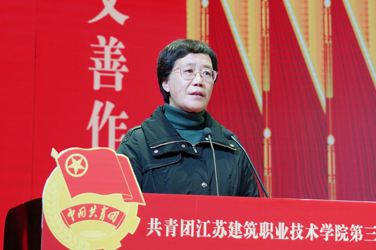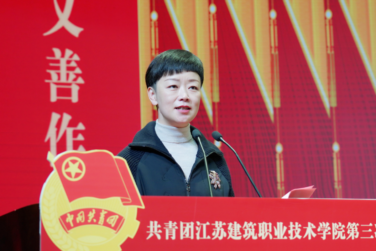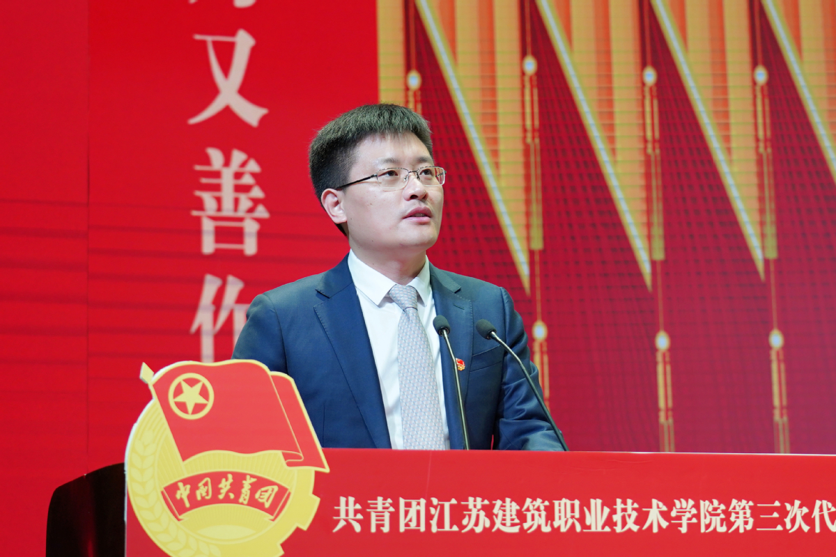 朱东风发表讲话,他在讲话中高度评价了学校第二次团代会以来,各级团组织团结带领广大团学青年为学校高质量发展作出的重要贡献,并代表学校党委祝贺大会召开。朱东风强调,青年是祖国的未来、民族的希望,每一位青年都应主动承载更为光荣的责任和使命,在实现中华民族伟大复兴中国梦和推动江苏建院创建全国一流智能建造特色鲜明的职业本科院校新征程中,迸发青春力量,展现青春价值,绽放青春光彩。他向学校广大团学青年提三点希望:一是要坚定理想信念,筑牢信仰之基,把个人的理想追求融入国家和民族事业中来,做中国特色社会主义事业的合格建设者和可靠接班人;二是要增长知识本领,投身伟大实践,真正将对人民的感情与对现实的关怀转化为加强自身学习的不竭动力,在中国大地上探寻青春的价值和人生的答案;三是要矢志拼搏奋斗,担当时代重任,立志做有理想、敢担当、能吃苦、肯奋斗的新时代好青年,让青春绽放更为绚丽的光芒。