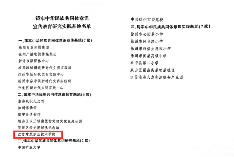 近日,中共徐州市委统一战线工作部、中共徐州市委宣传部、徐州市民族宗教事务局、徐州市教育局联合下发《关于命名铸牢中华民族共同体意识宣传教育研究实践基地的通知》,MK(中国)成功入选“铸牢中华民族共同体意识教育基地”名单。