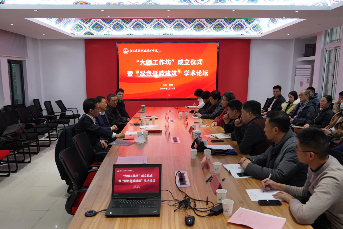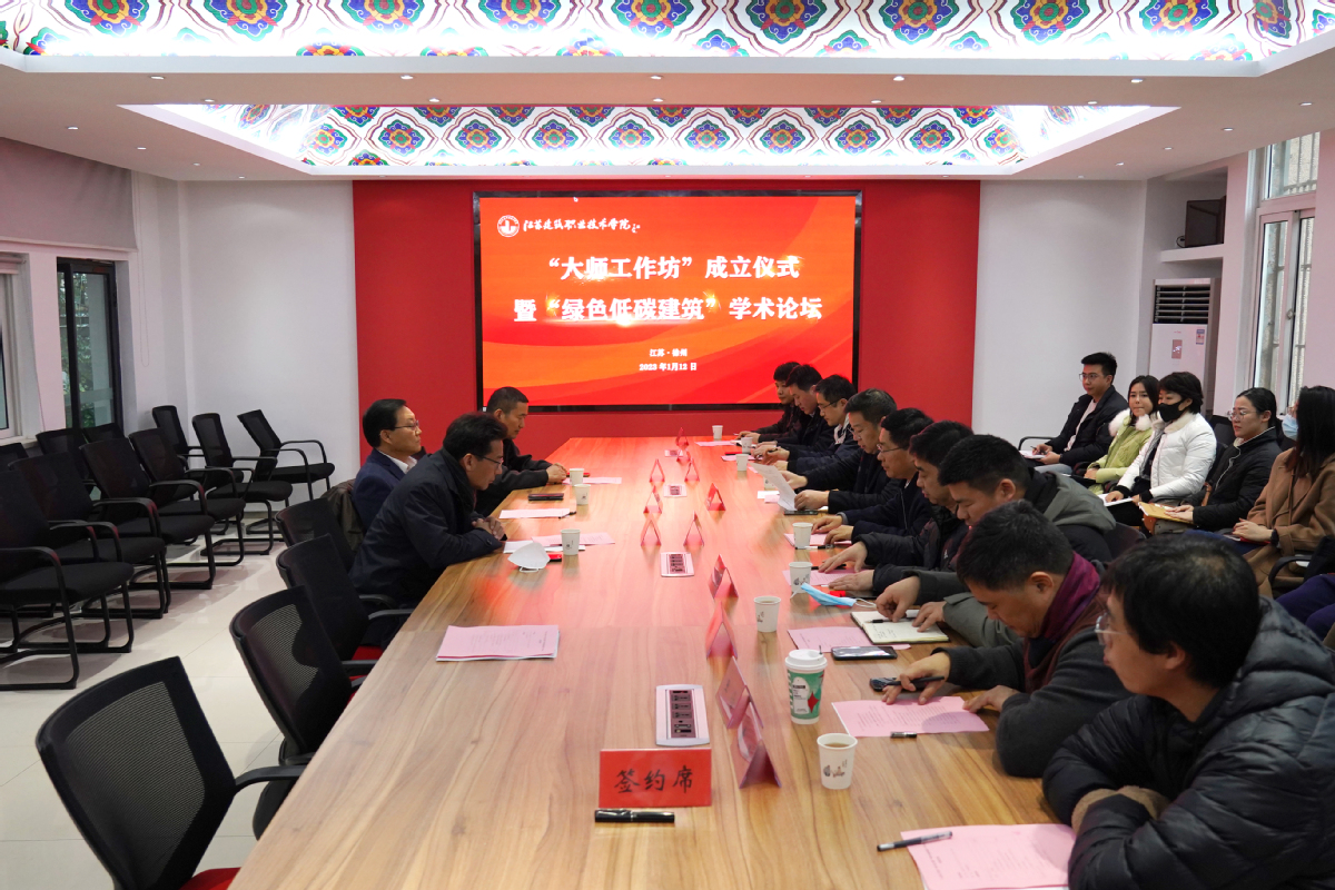 为进一步推进MK(中国)“双高”建设工作落地落实,确保各项任务高质量推进,1月12日下午,学校在建筑装饰学院会议室举行“大师工作坊”成立仪式暨“绿色低碳建筑”学术论坛。江苏省建筑与历史文化研究会会长、原江苏省住房和城乡建设厅副厅长刘大威,本次入驻学校成立工作坊的大师冯正功、刘志军,校党委书记朱东风、校长沈士德、副校长刘海波、各相关单位负责人、各相关专业骨干教师参加活动。