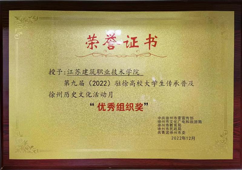 传承普及徐州历史文化是学校参与地文化交流的重要切入口,学校将继续以此为契机深入践行社会主义核心价值观,弘扬中华优秀传统文化,鼓励引导广大青年学生积极创作优秀作品,持续打造江苏建院文化传承品牌。