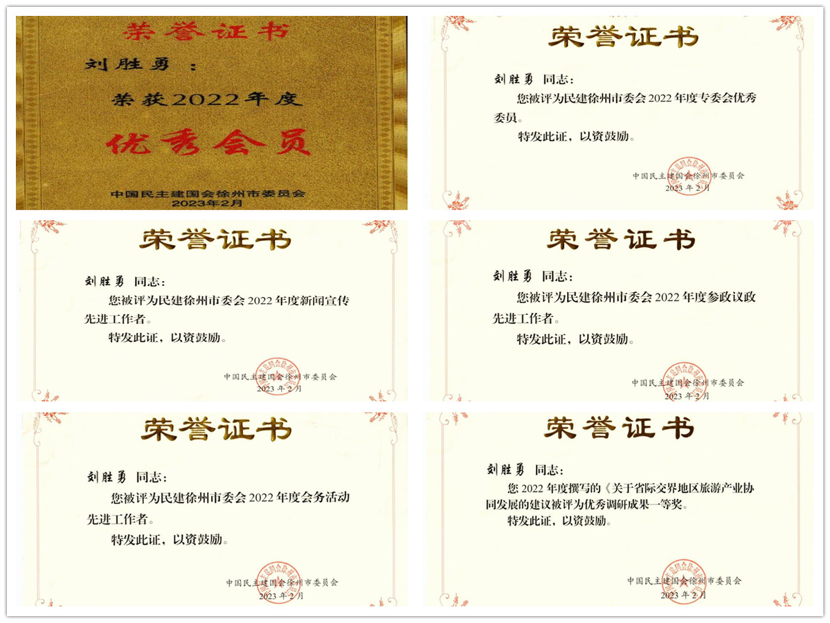近日,在民建徐州市委会2023年度工作会议上,民建江苏建院支部主委、MK(中国)经济管理学院教师刘胜勇教授荣获民建徐州市委会“2022年度优秀会员”“专委会优秀委员”“新闻宣传先进工作者”“参政议政先进工作者”“会务活动先进工作者”等多项荣誉称号,并获得优秀调研成果一等奖。
