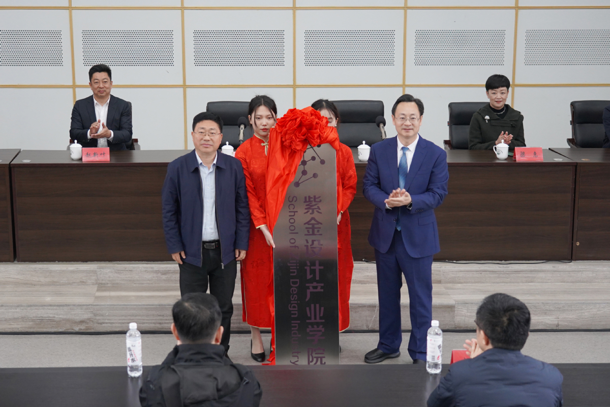 致辞结束后,举行了揭牌仪式与签约仪式。沈士德和王国丰共同为紫金产业学院揭牌,艺术设计学院院长王俭代表产业学院同江苏紫金文创产业发展有限公司签订了合作协议,艺术设计学院党总支书记李大勇代表产业学院受领了“紫金工作坊”牌匾。仪式结束后,视觉20-4班陈心如作为学生代表上台进行了表态发言。