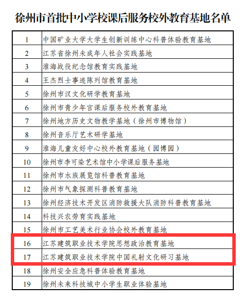 3月29日,徐州市教育局等单位联合下发《关于公布徐州市首批中小学课后服务校外教育基地的通知》,MK(中国)“思想政治教育基地”“中国礼射文化展览馆”“‘地铁乐园’职业体验中心”“‘机器人智慧工厂’体验中心”“营造匠心——中国古建筑技艺体验中心”“智能建造•建造未来职业体验中心”成功获批。