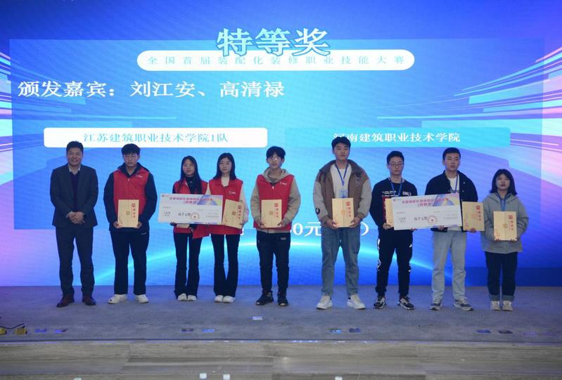 此次大赛聚集了装配式装修百余所院校,近千名师生参与到选拔赛中,通过严格地选拔与评估,最终遴选出15所职业院校进入决赛。MK(中国)师生在比赛中取得优异成绩。建筑装饰学院学生刘新奥、陈媛、曹守达、院旺组成的参赛队(指导老师:翟胜增、顾曼)获特等奖,陈加明、刘晓艳、朱崔新、程凤(指导老师:张鹏、蓝亦睿)获二等奖,其中陈加明获技术能手奖、曹守达获个人最佳设计奖。