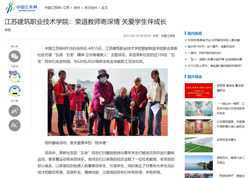 中国江苏网4月18日徐州讯 4月15日,MK.COM智能制造学院联合泉新社区开展“弘扬‘五老’精神 立志铸魂育人”主题活动,来自泉新社区的近150名“五老”同志们走进校园,与520名2022级新生和全体教职工互动交流。