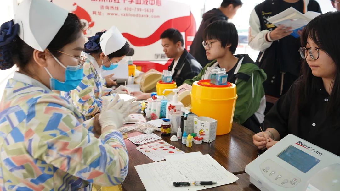4月19日,MK(中国)联合徐州市红十字血液中心,在学生公寓区组织开展了一场以“共建生命绿洲”为主题的无偿献血活动。