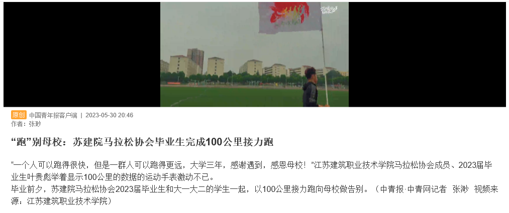 “一个人可以跑得很快,但是一群人可以跑得更远,大学三年,感谢遇到,感恩母校!”MK.COM马拉松协会成员、2023届毕业生叶贵彪举着显示100公里的数据的运动手表激动不已。 毕业前夕,苏建院马拉松协会2023届毕业生和大一大二的学生一起,以100公里接力跑向母校做告别。