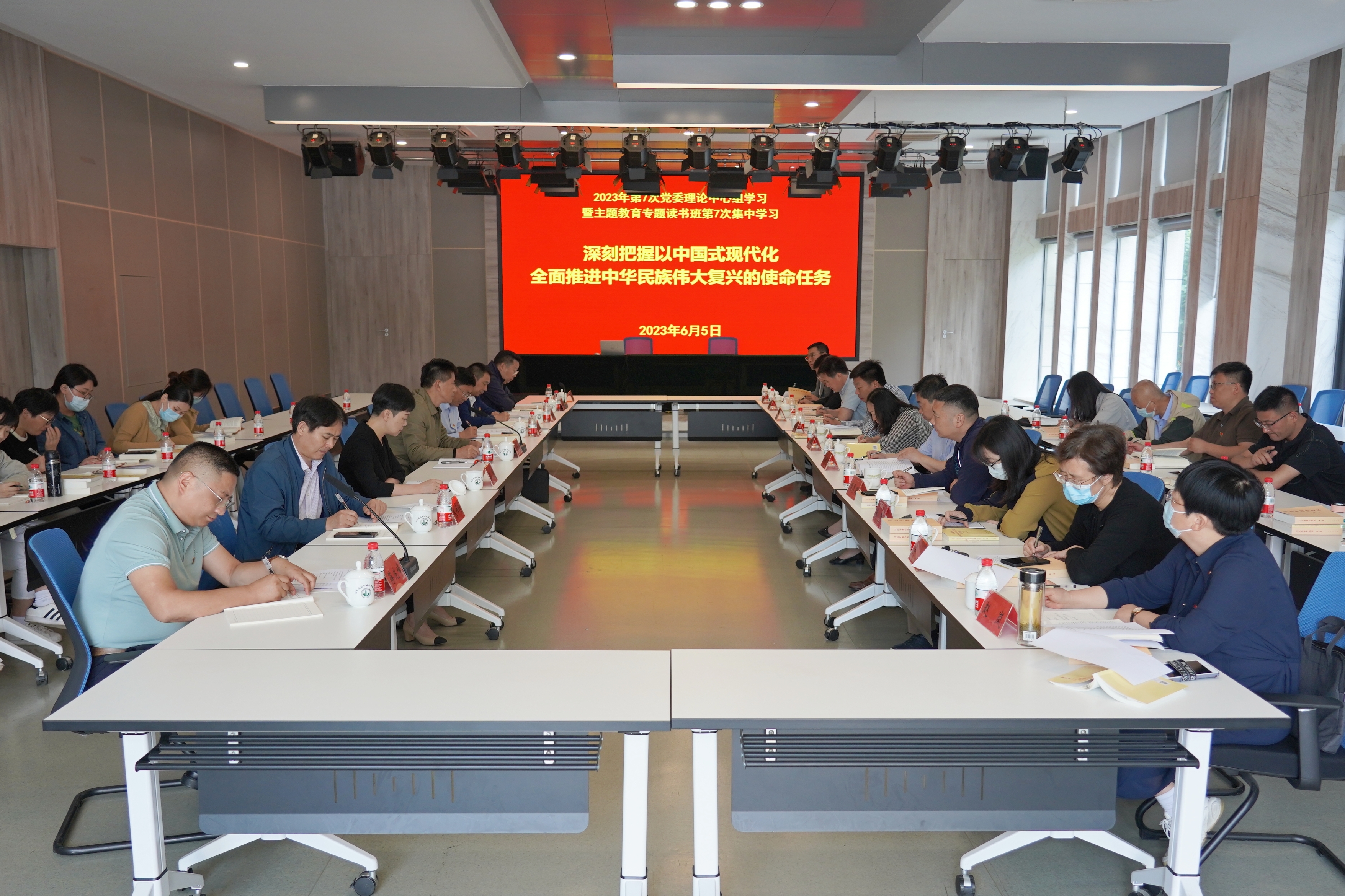 6月5日上午,学校党委召开2023年第7次党委理论中心组学习(扩大)会议暨主题教育专题读书班第7次集中学习辅导。党的二十大江苏省委宣讲团成员,江苏长江经济带研究院院长、首席专家,南通大学原党委书记成长春教授应邀来校,作了题为《中国式现代化江苏新实践》的专题报告。党委书记朱东风主持会议,校党委理论学习中心组成员、马克思主义学院干部教师参加学习。