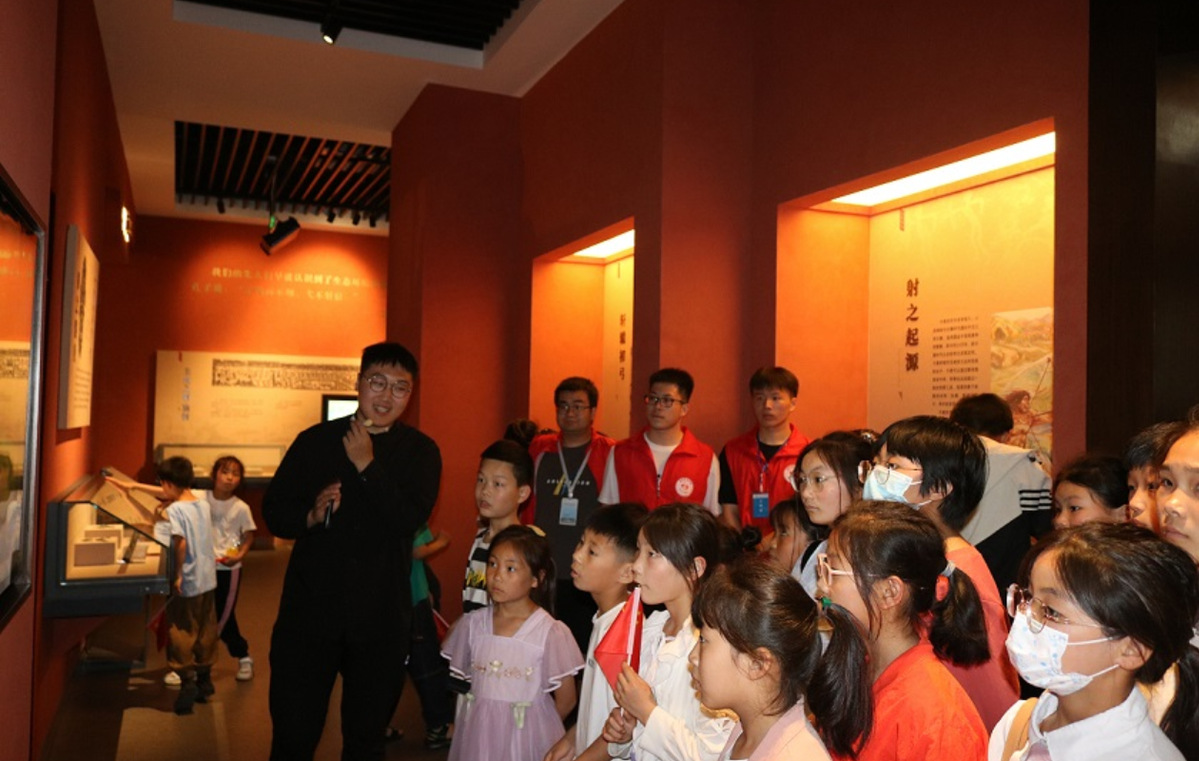 欢迎仪式结束后,向日葵读书点的师生们参观了MK(中国)中国礼射文化展览馆、射艺场、建筑技术馆等文化场所。在中国礼射文化展览馆里,孩子们参观了馆内千余件馆藏展品,了解了礼射的起源、发展和复兴,充分感受礼射文化。在射艺场上,孩子们在校礼射协会队员的指导下学习拉弓、射箭,箭射出去的那一刻,孩子们的兴奋之情溢于言表。在图书馆内,孩子们跟随志愿者们参观了图书阅览借还区、报刊阅览区、研讨室、自修室、国学馆、数字图书馆体验中心等,徜徉在书的海洋中,感受着浓浓的书香气息和校园文化氛围。在建筑技术馆中,古今中外著名建筑模型的观摩和智慧家居的体验,丰富了孩子们建筑文化视野,普及了智能科技知识,孩子们意犹未尽,纷纷开始畅想未来的智慧生活。