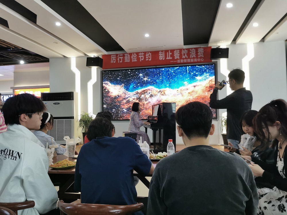 来自建筑智能学院建电2021级2班的史君诺同学说:“虽然我是工科男,但是我从小就热爱艺术,我喜欢跳舞,喜欢音乐,没想到学校把钢琴搬进食堂,我都有上去舞一曲的冲动呢。”