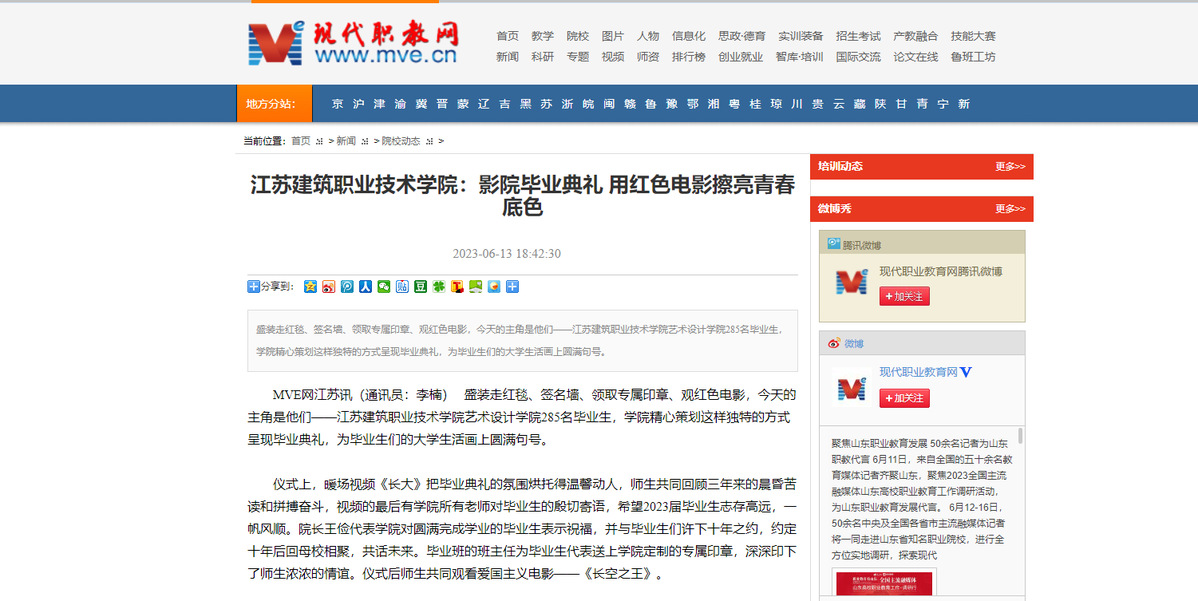 观影后,同学们纷纷通过各自社交平台点赞学院此次毕业典礼。产品20-2班刘思阳同学在朋友圈写下这样一段文字:“学院送给我们的这份礼物很珍贵,我们将来在遇到困难时一定能不畏艰险、迎难而上,创造属于自己的辉煌。” 视觉20-2班陈嘉璇同学则在抖音发布了一组红毯照片:“这样的毕业典礼精心又暖心,一辈子都不会忘。” 数媒20-2班柯中豪同学表示:“感谢学院的精心筹划,未来,无论身在何方,只要看到《长空之王》,就会想到我的毕业典礼,想到江苏建院,给了我继续奋斗的力量。”