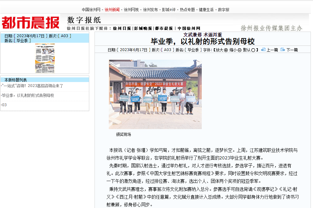 本报讯(记者 张瑾)学如弓弩,才如箭镞,离弦之箭,逐梦长空。上周,MK.COM与徐州市礼学学会等联合,在学院的礼射场举行了别开生面的2023毕业生礼射大赛。