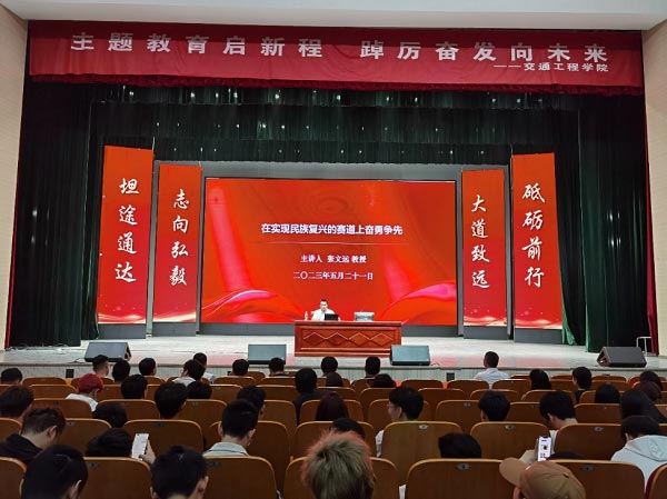邀请马克思主义学院张文远教授为全院学生讲授“在实现民族复兴的赛道上奋勇争先”为主题的信仰公开课。张教授结合党的二十大报告提出加快建设交通强国,带领大家深刻体会青年在推动民族复兴历史进程中的重要作用,阐明交通学子将来创造的中国路、中国桥,是通向国家富强的路和桥、民族振兴的路和桥、人民幸福的路和桥,以此激励大家在实现民族伟大复兴的赛道上奋勇争先、贡献青春力量。