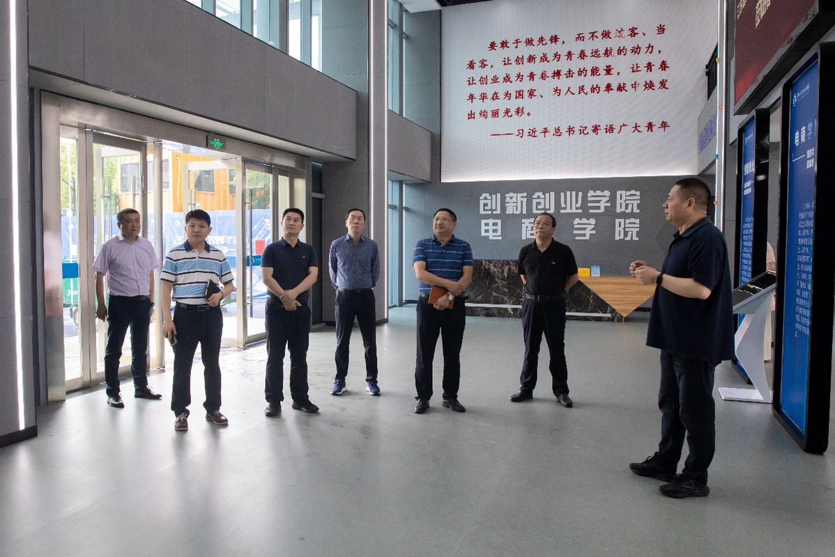 在扬州工业职业技术学院,副校长丁传安及相关部门负责人介绍了学校教学资源、产教融合、科学研究、创新创业等办学基本情况,现场考察了创新创业学院(电商学院)的建设情况和标志性成果。双方围绕产业学院、高水平科技成果与技术服务、高层次人才作用发挥、招生与就业、创新创业等方面工作进行了深入交流。