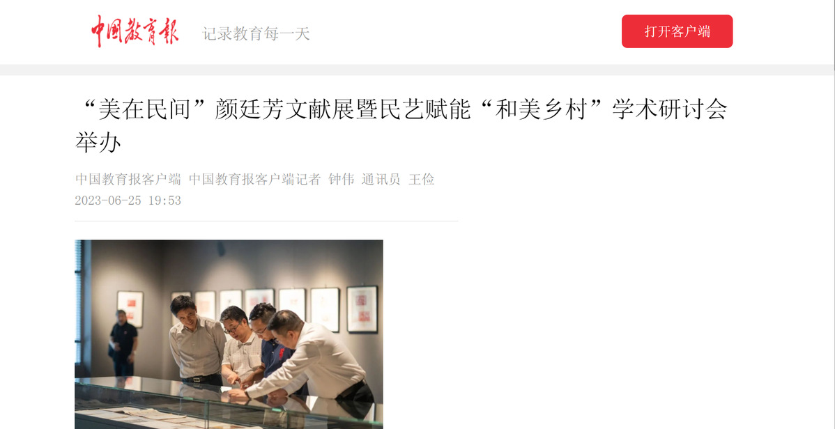 此次“美在民间”颜廷芳文献展是在20世纪80年代颜廷芳先生策划的《邳县民间剪纸》(1986年4月1日—14日在中央美术学院展览馆由江苏省邳县文化局、中央美术学院举办)和《邳县农民画剪纸》(1988年7月5日—17日在中国美术馆西北厅由江苏省邳县人民政府、中国美术家协会江苏分会、中国美术馆主办)两个展览的基础上进行的再次策划,集中展示了颜廷芳先生收藏的大量剪纸及手稿,对推出徐州地域文化品牌、展示徐州民间特色文化风采产生了积极影响,为发掘、保护和传承民间艺术精华,弘扬中华民族优秀传统文化,推进区域经济与社会事业协调发展作出了突出贡献。另外,此次展出的作品和相关文献得到颜廷芳家人的授权,并将部分作品捐赠江苏建筑职院艺术设计学院,这些民艺资料为艺术设计学院建立传统技艺类教学资源库和专业教师进行教学、科学研究提供了宝贵的文献支持和创作土壤。