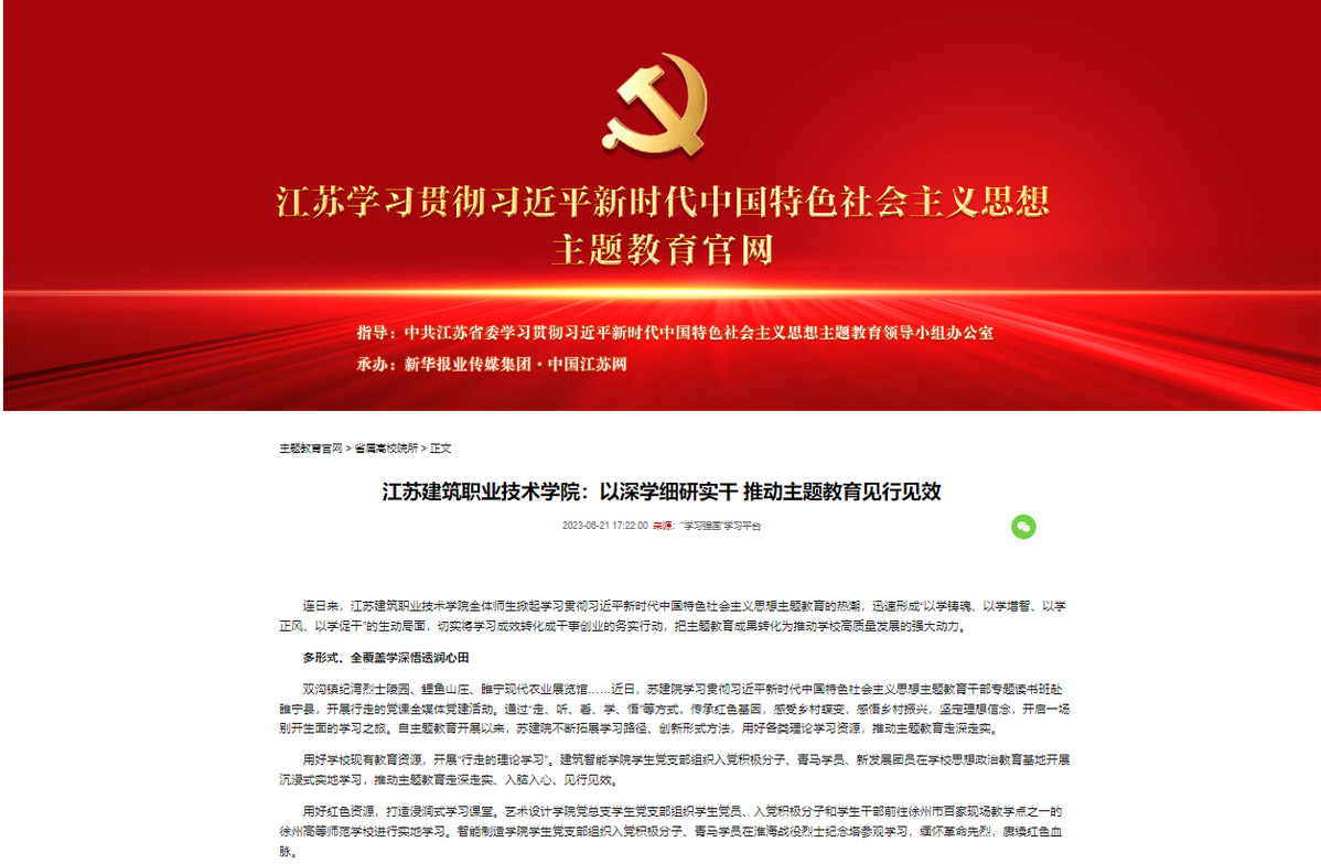 苏建院坚持学思用贯通、知信行统一,注重学用结合、以学促干,把调查研究作为主题教育的重要内容,推动主题教育深入开展、取得实效。