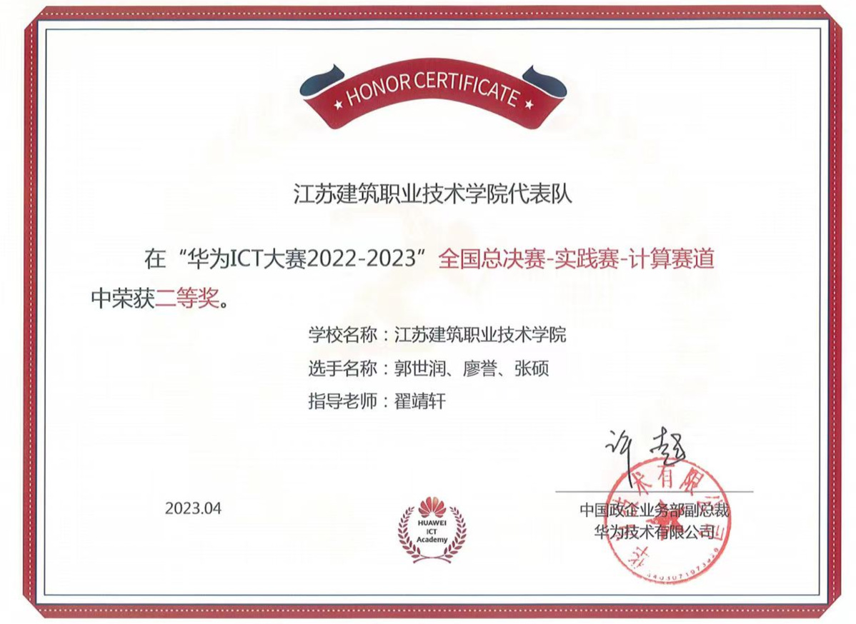 近日,华为ICT大赛2022-2023中国区总决赛颁奖典礼暨人才联盟伙伴年会在海南三亚举行,由MK(中国)信息与网络中心、信电工程学院共同指导的参赛学生廖誉、郭世润、张硕荣获计算赛道全国总决赛二等奖,教师翟靖轩获得优秀指导老师奖。
