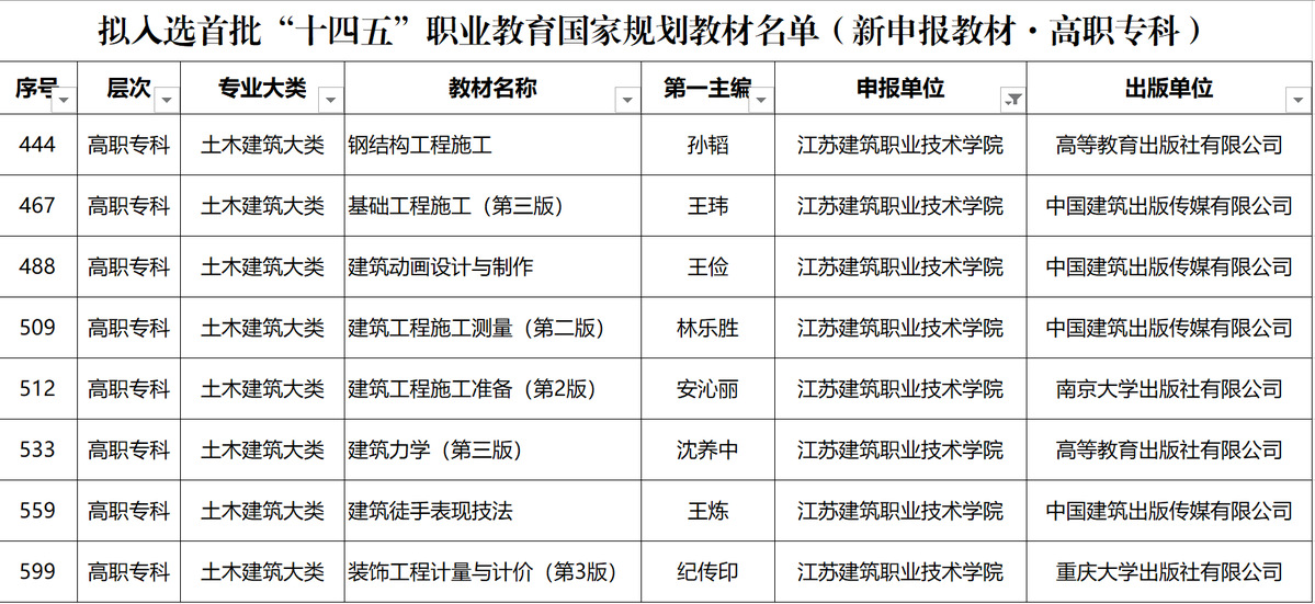 近日,教育部办公厅发布了《关于公布首批“十四五”职业教育国家规划教材书目的通知》(教职成厅函〔2023〕19号),MK(中国)教师主编的22部教材(包含新申报教材8部、“十三五”复核教材14部)入选首批“十四五”职业教育国家规划教材书目名单。在高职高专新申报教材入选数量统计名单中,MK(中国)以8部教材位居全国第9位、江苏省第2位。