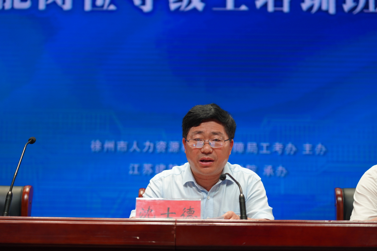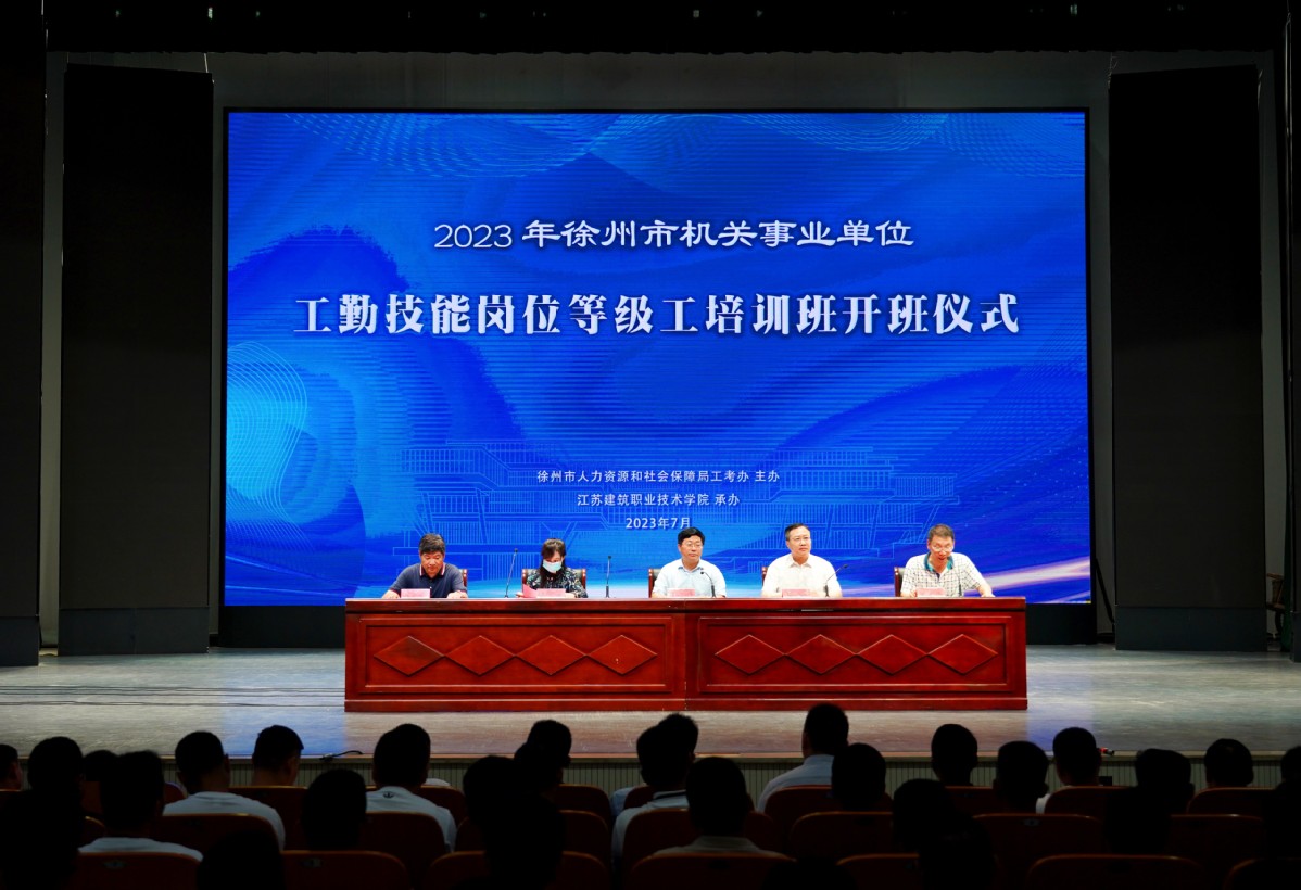 7月7日,2023年徐州市机关事业单位工勤技能岗位等级工培训开班仪式在MK(中国)会堂举行,党委副书记、校长沈士德,徐州市人力资源和社会保障局副局长苗斌、工考办主任陈苏南及校实验实训管理处相关负责人出席开班仪式。
