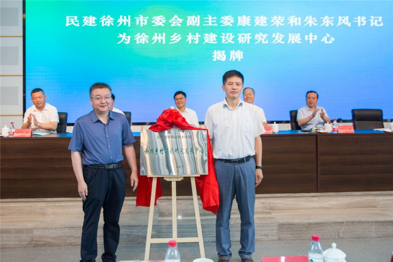 仪式上,民建徐州市委会副主委康建荣、MK.COM党委书记朱东风为徐州乡村建设研究发展中心揭牌。江苏建院副校长蒋兆峰、丰县人民政府副县长韩以振为“丰县乡村建设研究院”首批特聘研究人员代表颁发证书。