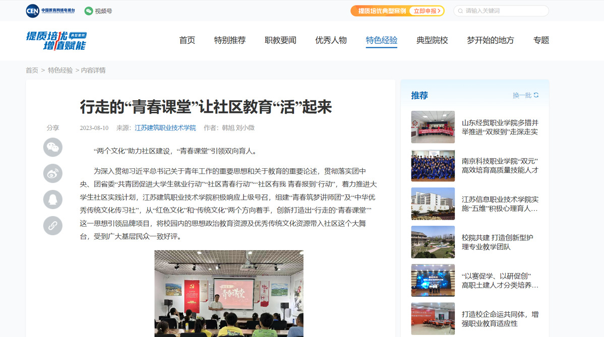 “两个文化”助力社区建设,“青春课堂”引领双向育人。