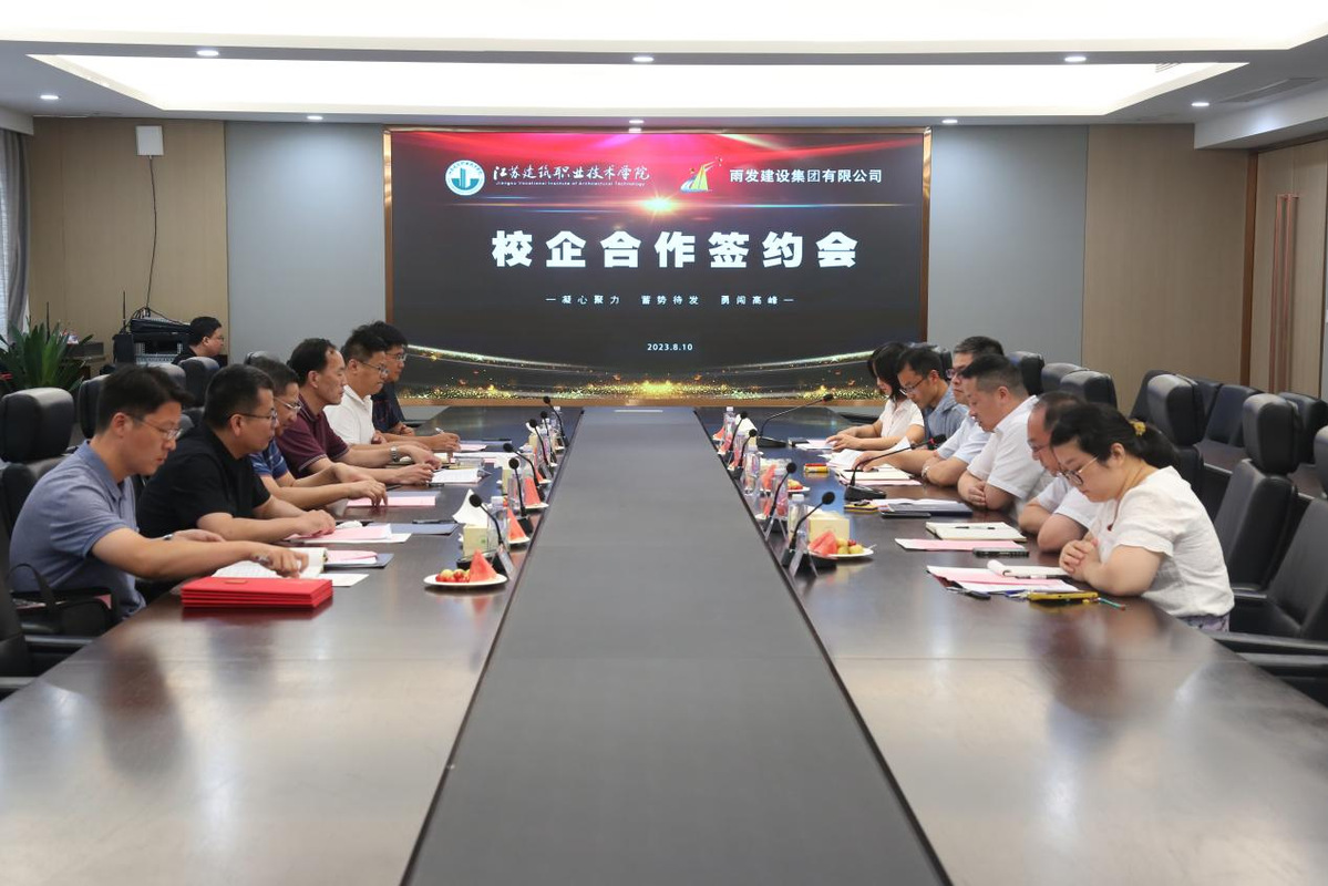 8月10日,党委委员、副校长蒋兆峰带队赴南京慧筑信息技术研究院有限公司、雨发建设集团有限公司参加校企合作签约仪式。招生就业处、校企合作处、建筑智能学院等部门负责人陪同。南京慧筑信息技术研究院有限公司总经理倪树新,事业部副总经理刘灵俐,大区经理刘亚蒙等;雨发建设集团有限公司行政副总、党委副书记向士满,水利公司总经理王成刚,总工程师、工程部经理梁玉龙等热情接待了蒋兆峰一行。