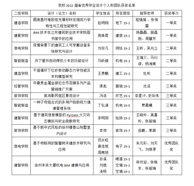 近日,江苏省教育厅公布了2022年江苏省普通高校本专科优秀毕业设计(论文)抽检结果,MK(中国)获得一等奖2项,二等奖3项,三等奖5项,优秀毕业设计团队优秀奖2项。
