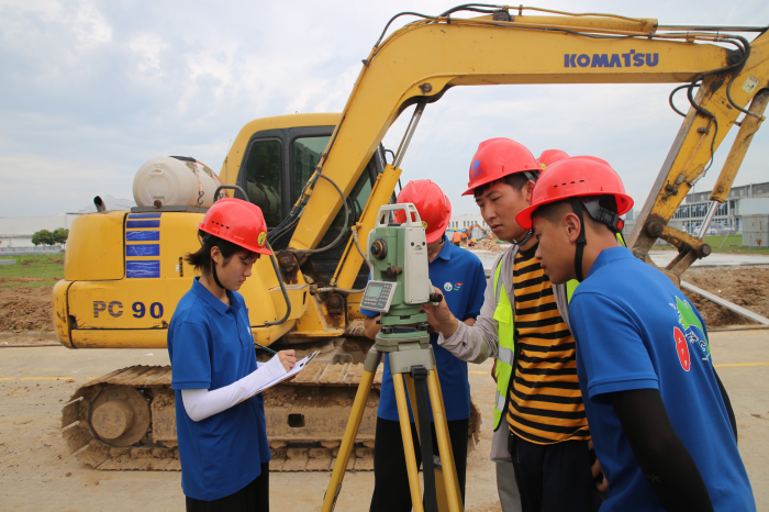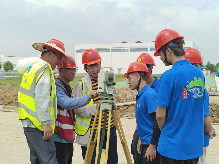在贾汪区塔山镇张场村安置房施工现场,实践团成员跟随从业30余年老师傅,进入作业场地,借助全自动电子定位仪、棱镜、三角架等测量工具,开展实测实量。秉承着精益求精的工匠精神,一毫一厘认真记录测量数据,为新农居的质量工程保驾护航。
