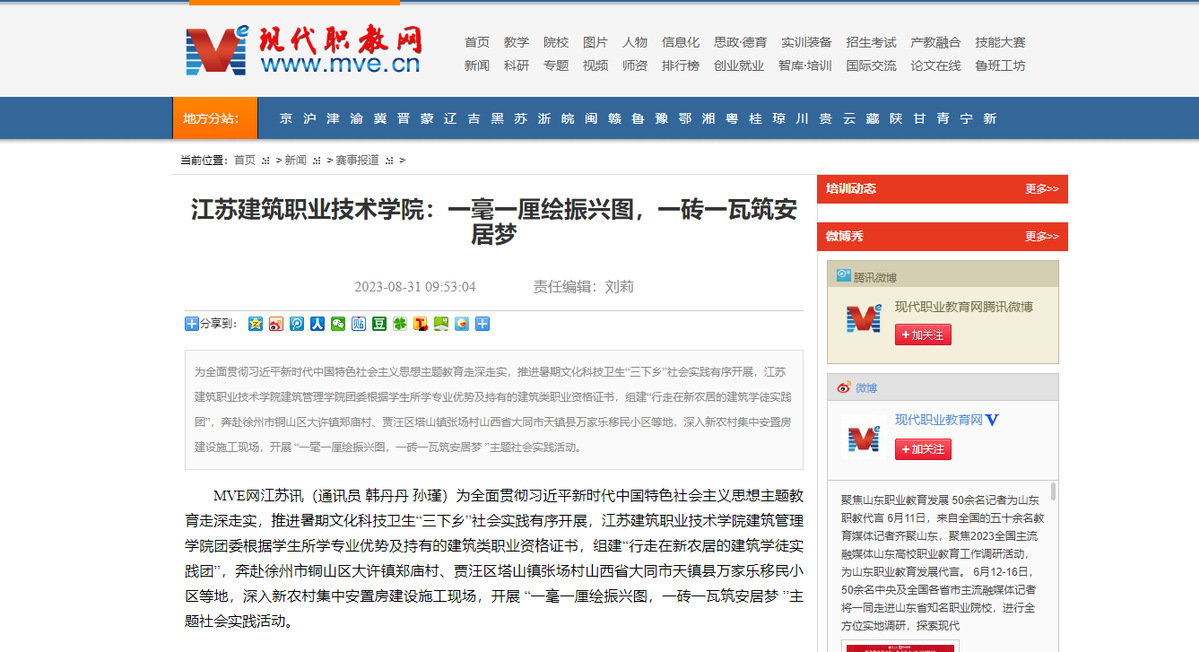MVE网江苏讯(通讯员 韩丹丹 孙瑾)为全面贯彻习近平新时代中国特色社会主义思想主题教育走深走实,推进暑期文化科技卫生“三下乡”社会实践有序开展,MK.COM建筑管理学院团委根据学生所学专业优势及持有的建筑类职业资格证书,组建“行走在新农居的建筑学徒实践团”,奔赴徐州市铜山区大许镇郑庙村、贾汪区塔山镇张场村山西省大同市天镇县万家乐移民小区等地,深入新农村集中安置房建设施工现场,开展 “一毫一厘绘振兴图,一砖一瓦筑安居梦 ”主题社会实践活动。