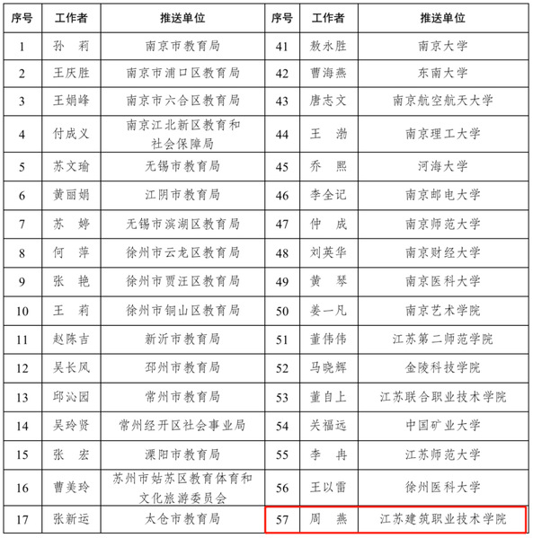 本次活动由省教育厅在全省教育系统中组织开展,全省各设区市、县(市、区)教育局和各高校、省属中职学校共推荐候选资助工作者236名,最终确定80名2023年“江苏优秀资助工作者”,其中高职高专院校13人。