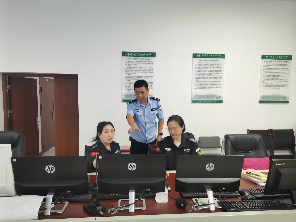 新生报到前后,徐州市公安局内保支队副支队长冯涛和大学保卫科科长胡峰来校进行安全工作指导,针对校园安全重点部位管理、安全防范设备设施配备等方面提出建议,指导制定新生报到安保工作预案,协调交警部门全力配合迎新。翟山派出所所长刘枫带领民警走到新生中间,通过发放反诈宣传手册、现场讲述学生受骗典型案例、宣贯防诈口诀,零距离地为新生上了一堂安全教育课。徐州市公安局泉山分局内保大队大队长夏岩带领公安技防专业人员来校指导智慧安防建设。通过技术手段,将学校监控视频接入公安内网,为实现警校联动,协同处置突发事件奠定安全基础。