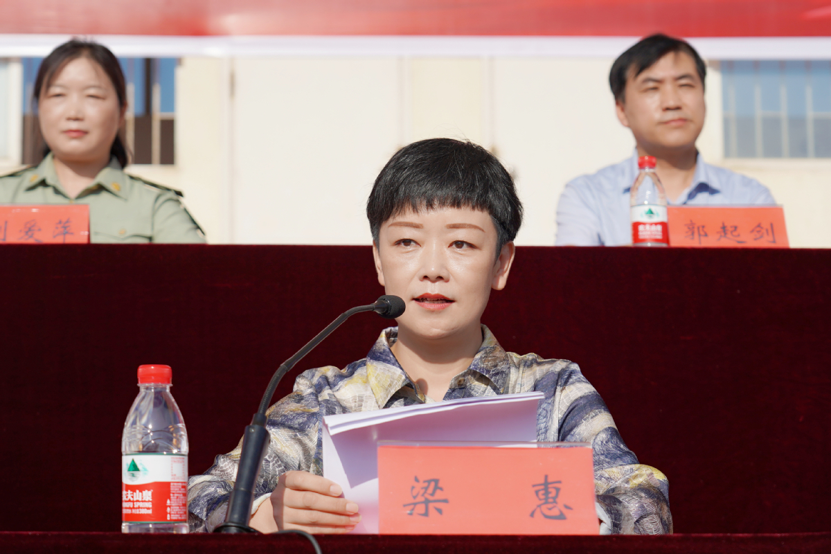 梁惠作动员讲话,她向全体23级参训同学简要介绍了学校的军校历史与军校文化传承情况,着重强调了军训的目的与意义。她指出,同学们要通过军训强化国防意识,践行使命担当,磨练顽强意志,锻炼坚毅品格,增强纪律观念,提升自身素质,成为担当民族复兴大任的时代新人。